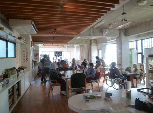 ![]() デイルームは天井が高く多人数でも居心地の良い空間です |